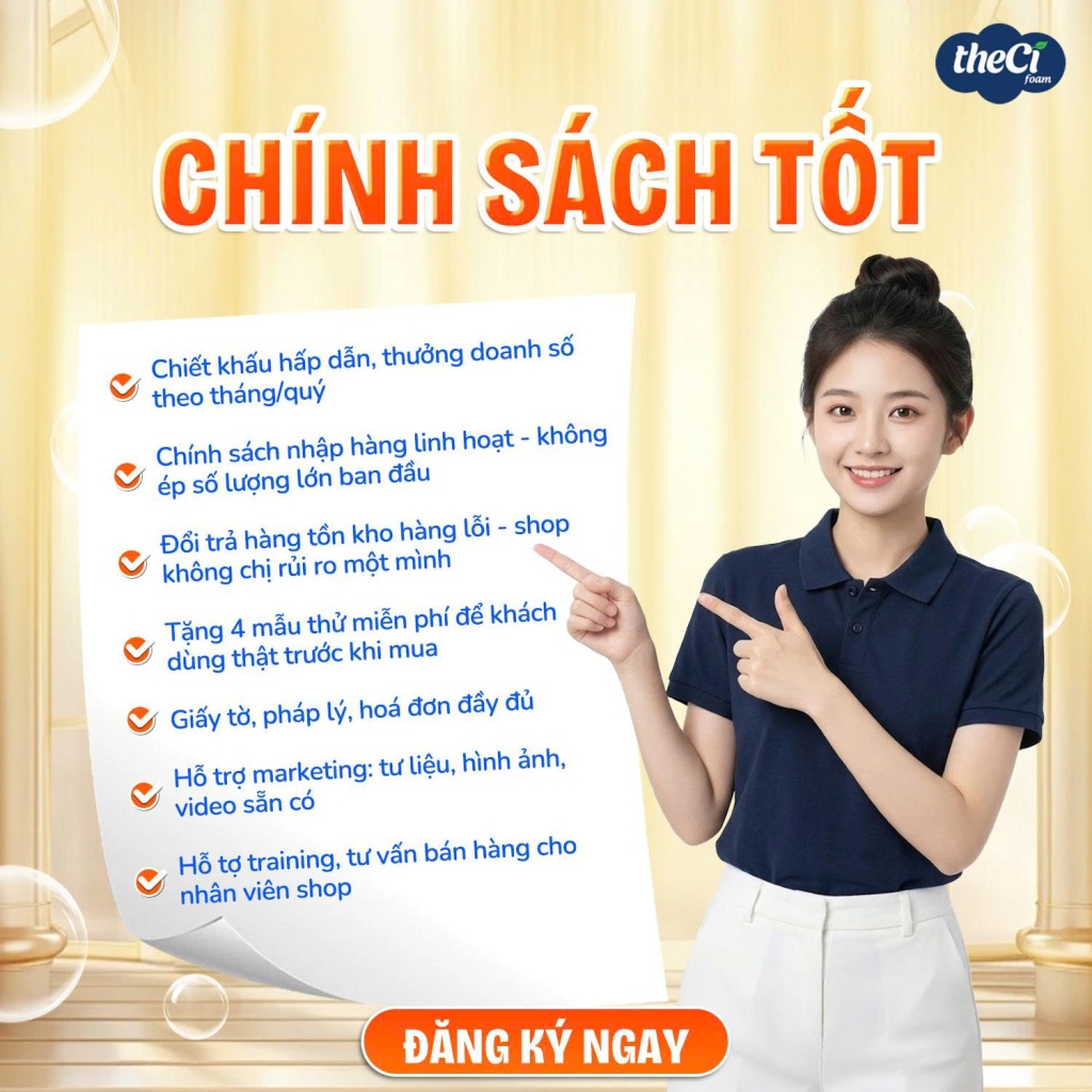 Khi hợp tác với TheCi Foam, bạn sẽ nhận được hệ thống hỗ trợ toàn diện: